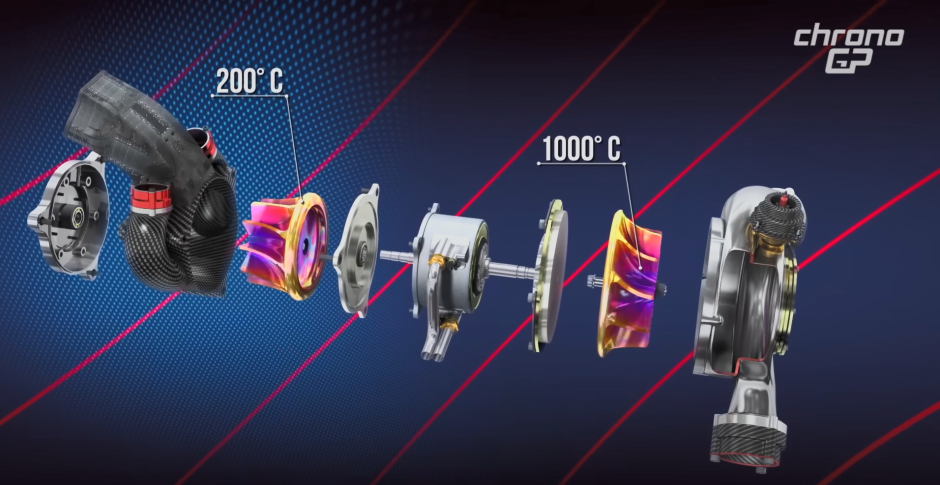 La rotazione è affidata ad alberi montati su cuscinetti in ceramica, raffreddati da una serpentina che utilizza lo stesso fluido di raffreddamento impiegato per batterie e MGU-K, mantenuti a circa 70°C. Una scelta che riduce la complessità impiantistica e i pesi, ma che richiede un bilanciamento molto fine nella gestione termica complessiva.